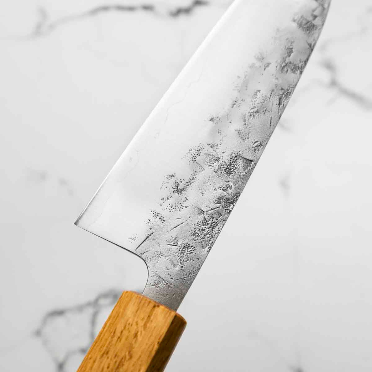 Japanese SLD steel is a semi-stainless steel crafted through advanced metallurgy. It is used often in Sanjo knives, has a non-chippy edge and is extremely tough. This high-carbon steel, enriched with chromium and molybdenum, offers excellent performance, but be mindful not to leave it wet for extended periods.