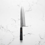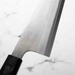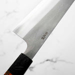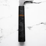 One of their most celebrated offerings is the SKD steel series — featuring a semi-stainless high-carbon core clad in stainless steel. The blades showcase a distinctive wide-bevel grind with a shallow hammer texture that sits stylistically between nashiji and kurouchi finishes. Paired with traditional burnt chestnut handles, each knife reflects Yoshikane’s dedication to consistency, craftsmanship, and timeless design.