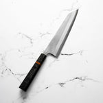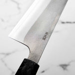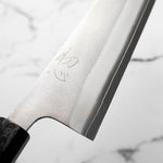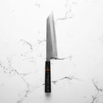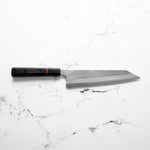 One of their most celebrated offerings is the SKD steel series — featuring a semi-stainless high-carbon core clad in stainless steel. The blades showcase a distinctive wide-bevel grind with a shallow hammer texture that sits stylistically between nashiji and kurouchi finishes. Paired with traditional burnt chestnut handles, each knife reflects Yoshikane’s dedication to consistency, craftsmanship, and timeless design.