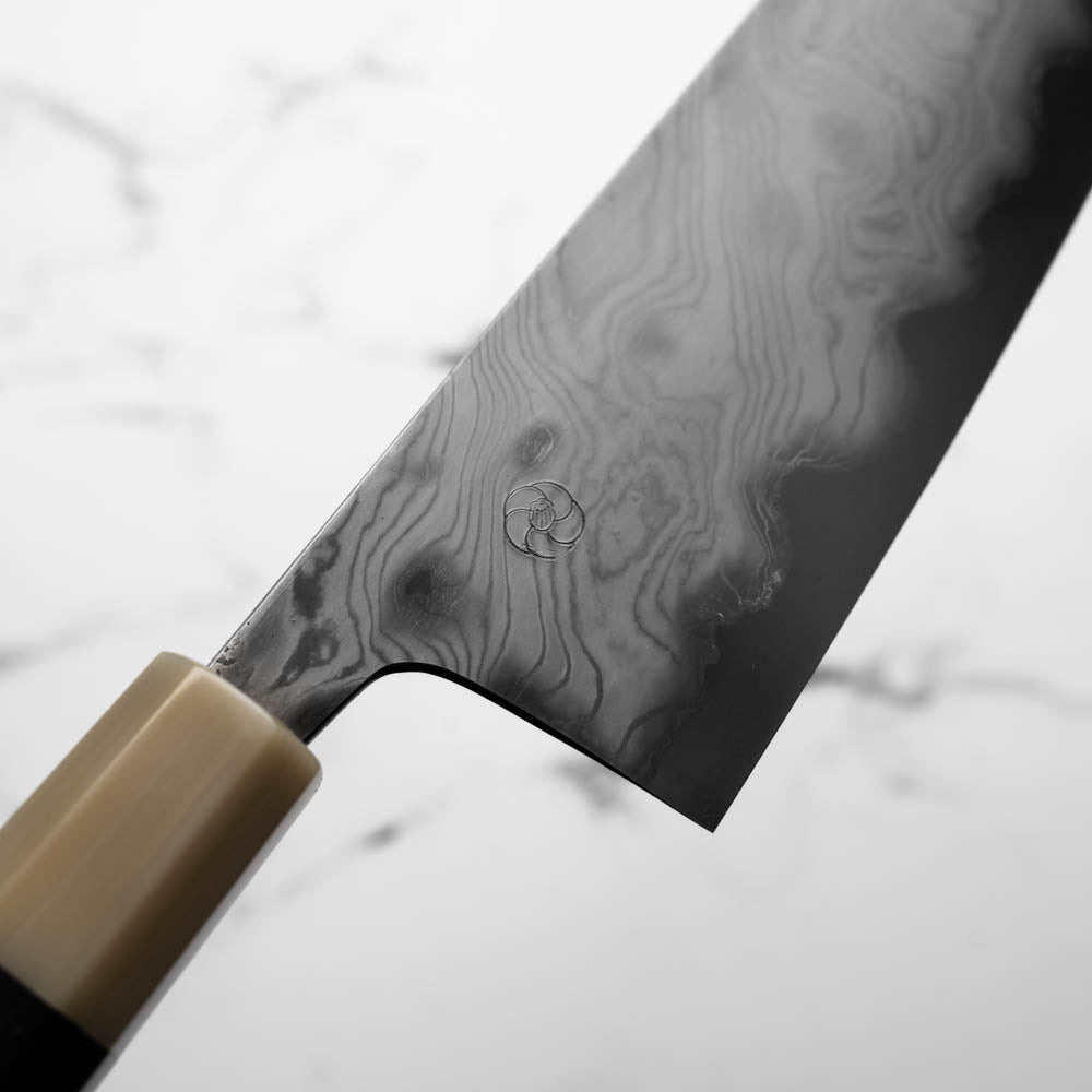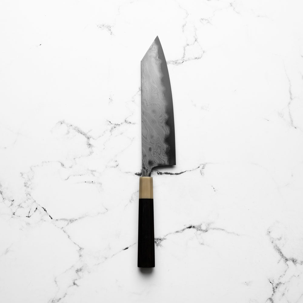 Miyazaki Kajiya Blue 2 Black Damascus Kiritsuke 210mm