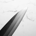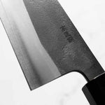 One of their most celebrated offerings is the SKD steel series — featuring a semi-stainless high-carbon core clad in stainless steel. The blades showcase a distinctive wide-bevel grind with a shallow hammer texture that sits stylistically between nashiji and kurouchi finishes. Paired with traditional burnt chestnut handles, each knife reflects Yoshikane’s dedication to consistency, craftsmanship, and timeless design.