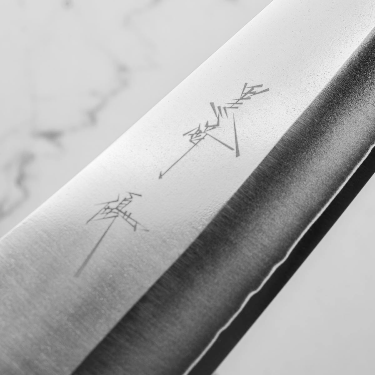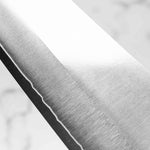 His knives are instantly recognizable for their striking Tsuchime and Suminagashi finishes, thin grinds, and use of high-performance steels such as SG2, HAP40, and stainless-clad Blue Super. Kurosaki’s Fujin series, with its dramatic wind-patterned hammer finish, helped cement his reputation as a blacksmith who blends artistry and technical brilliance in equal measure.