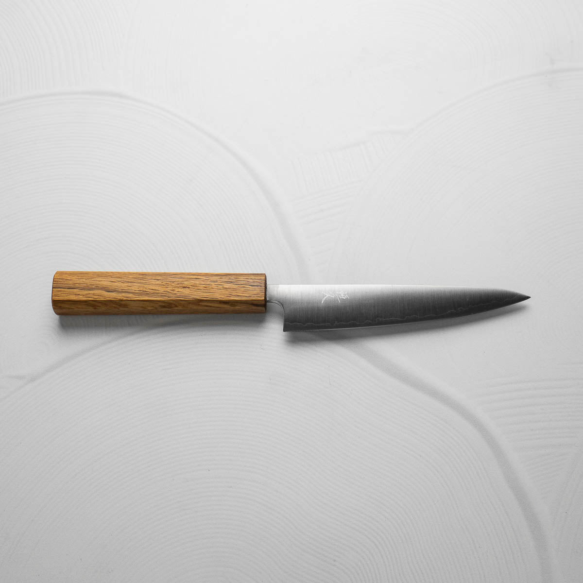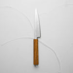 The Petty knife, a quintessential tool in Japanese cuisine, is a smaller utility knife used for precise, delicate tasks. Often considered a smaller sibling to the chef's knife, it excels in hand-held tasks like peeling, trimming, and intricate cutting. Its versatility makes it an essential for detailed culinary work.