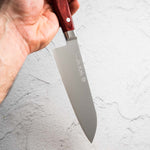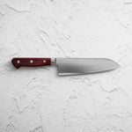 The Santoku knife, a classic in Japanese kitchens, translates to "three virtues," symbolizing its proficiency in slicing, dicing, and mincing. With a shorter, versatile blade and a balanced design, it's ideal for a range of tasks, from cutting meat to chopping vegetables, making it a beloved all-purpose tool.