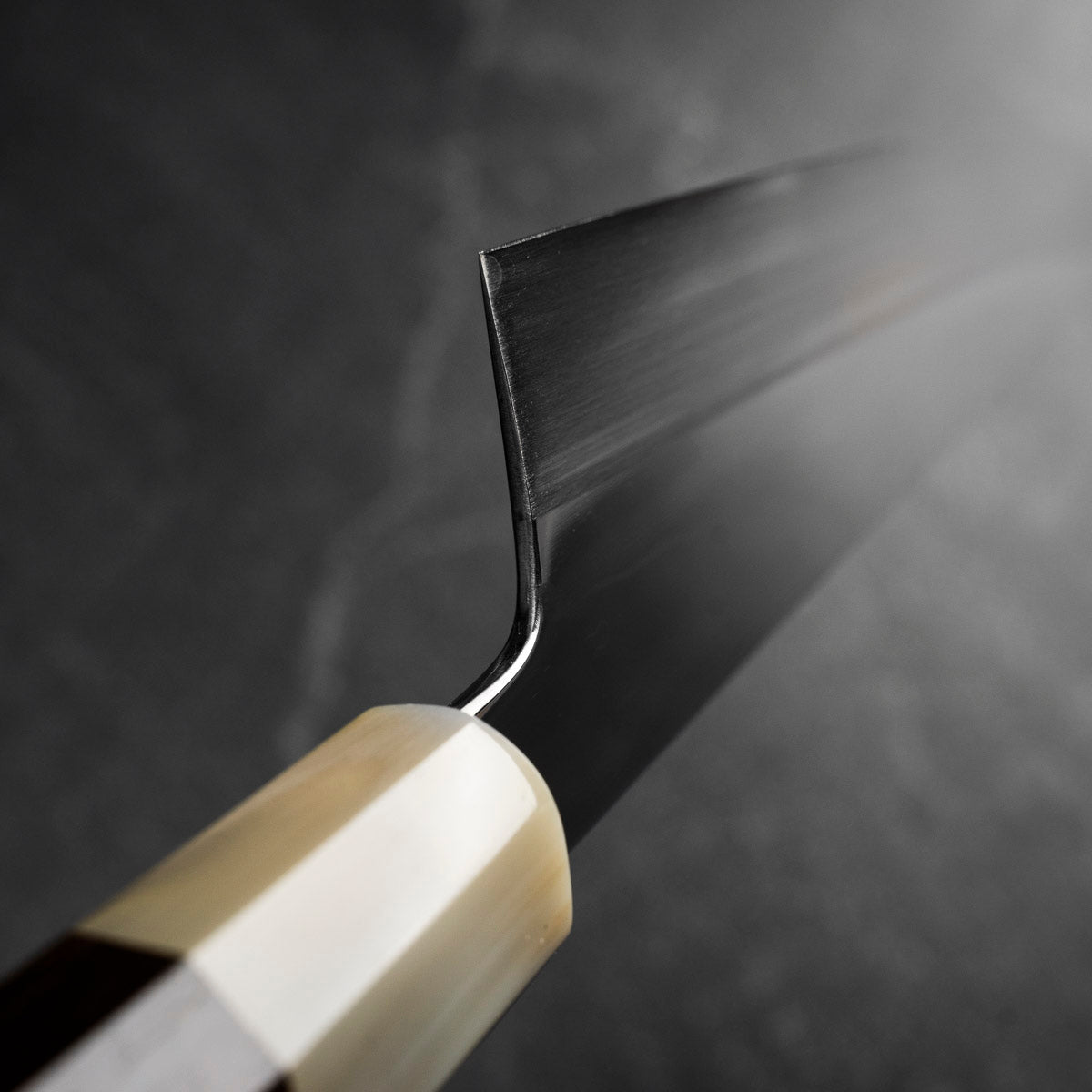 In an exclusive collaboration between Chef’s Edge and Sakai Kikumori, Nakagawa-san crafted a unique series of knives featuring taller blade profiles, specially designed to deliver outstanding handling, comfort, and cutting performance. Each blade embodies Nakagawa’s deep commitment to excellence and showcases why he is becoming one of Japan’s most celebrated knife-makers.
