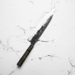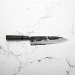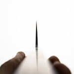 Based in the famed knifemaking city of Sanjo, Niigata, Naoki Mazaki is a talented young artisan whose work is defined by meticulous attention to detail and complete dedication to traditional craftsmanship. Working entirely by himself—from forging and shaping, to sharpening and fitting handles—Mazaki specializes in knives forged from Shirogami #2 steel with iron cladding.
