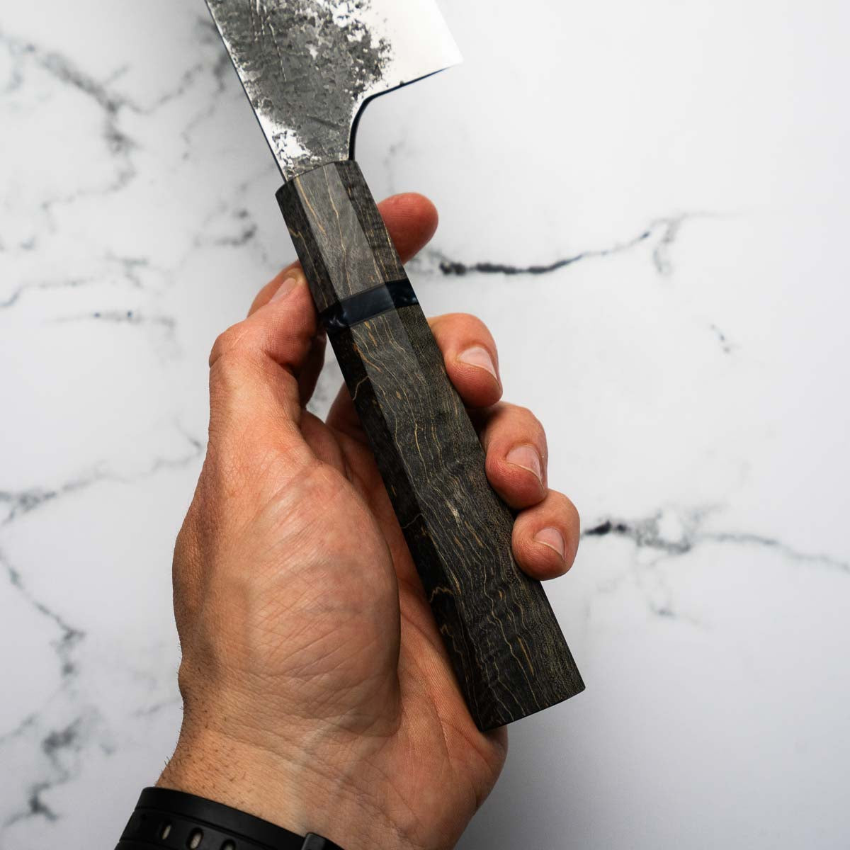 His knives are celebrated for their exceptional performance, refined finish, and distinctive geometry, meticulously honed by hand on whetstones. Due to the careful, solo nature of his craft, Mazaki’s knives have become highly sought-after, known as much for their scarcity as their extraordinary quality.