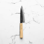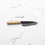 The Petty knife, a quintessential tool in Japanese cuisine, is a smaller utility knife used for precise, delicate tasks. Often considered a smaller sibling to the chef's knife, it excels in hand-held tasks like peeling, trimming, and intricate cutting. Its versatility makes it an essential for detailed culinary work.