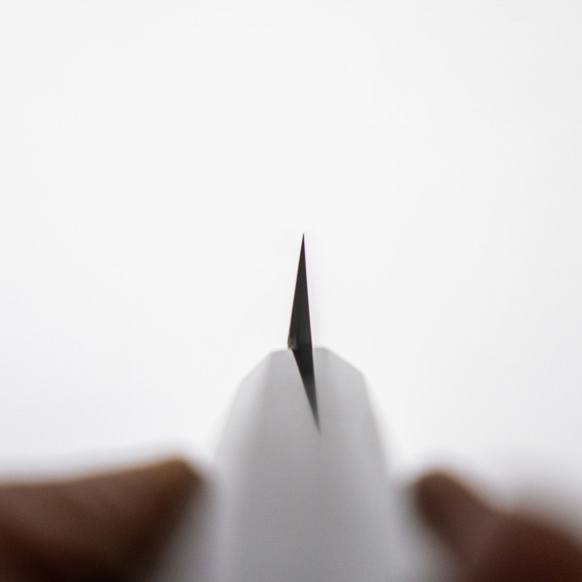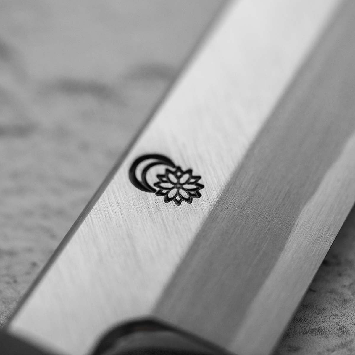 Japanese White Steel #2, a traditional high-carbon steel, is cherished for its purity and fine grain structure, enabling razor-sharp edges, at the cost of being reactive. It is one of the easiest steels to sharpen, but cannot be left wet for even short periods otherwise rust spots can occur. If you’re fastidious in your knife maintenance, this knife can steel can be extremely rewarding to use.