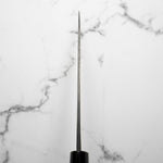 Japanese White Steel #2, a traditional high-carbon steel, is cherished for its purity and fine grain structure, enabling razor-sharp edges, at the cost of being reactive. It is one of the easiest steels to sharpen, but cannot be left wet for even short periods otherwise rust spots can occur. If you’re fastidious in your knife maintenance, this knife steel can be extremely rewarding to use.