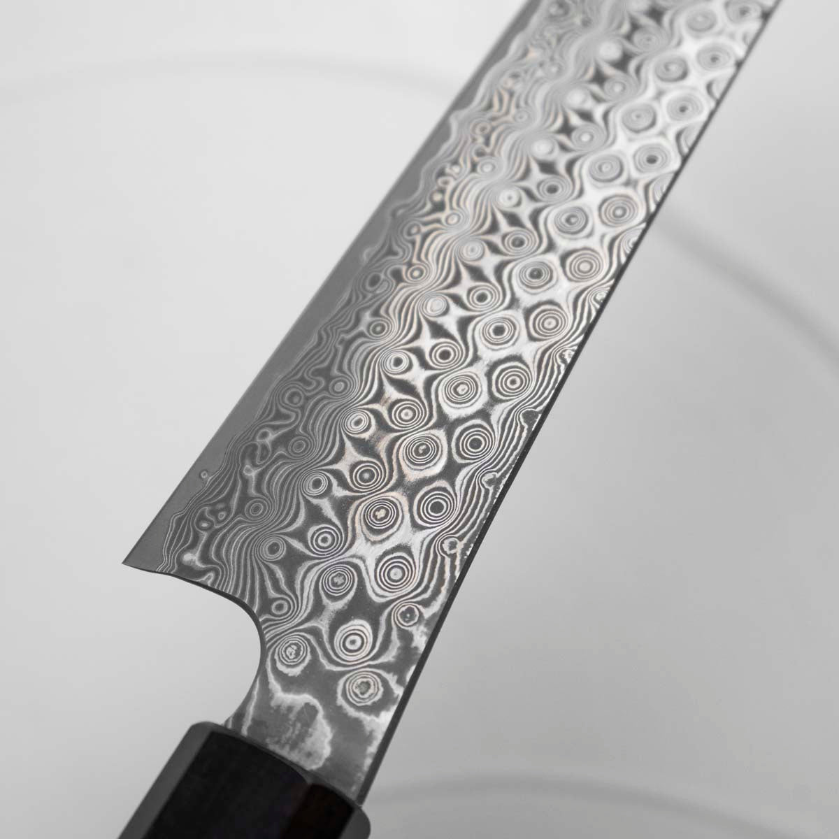 Nigara Hamono SG2 Raindrop Damascus Sakimaru Sujihiki 300mm - Ebony