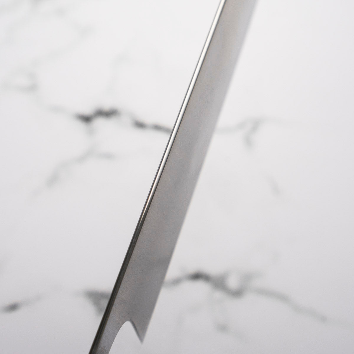 Japanese SG2, also known as R2 steel, is a high-end, powdered metallurgy stainless steel and one of the finest knife-making steels available in Japan. It is a favourite of many for its exceptional hardness and edge retention. Its fine, uniform grain structure enables razor-sharp edges, all the while holding an edge for much longer than Carbon steel knives, without needing to be concerned about rust appearing.