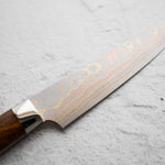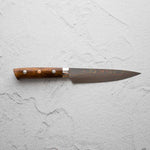 The Petty knife, a quintessential tool in Japanese cuisine, is a smaller utility knife used for precise, delicate tasks. Often considered a smaller sibling to the chef's knife, it excels in hand-held tasks like peeling, trimming, and intricate cutting. Its versatility makes it an essential for detailed culinary work.