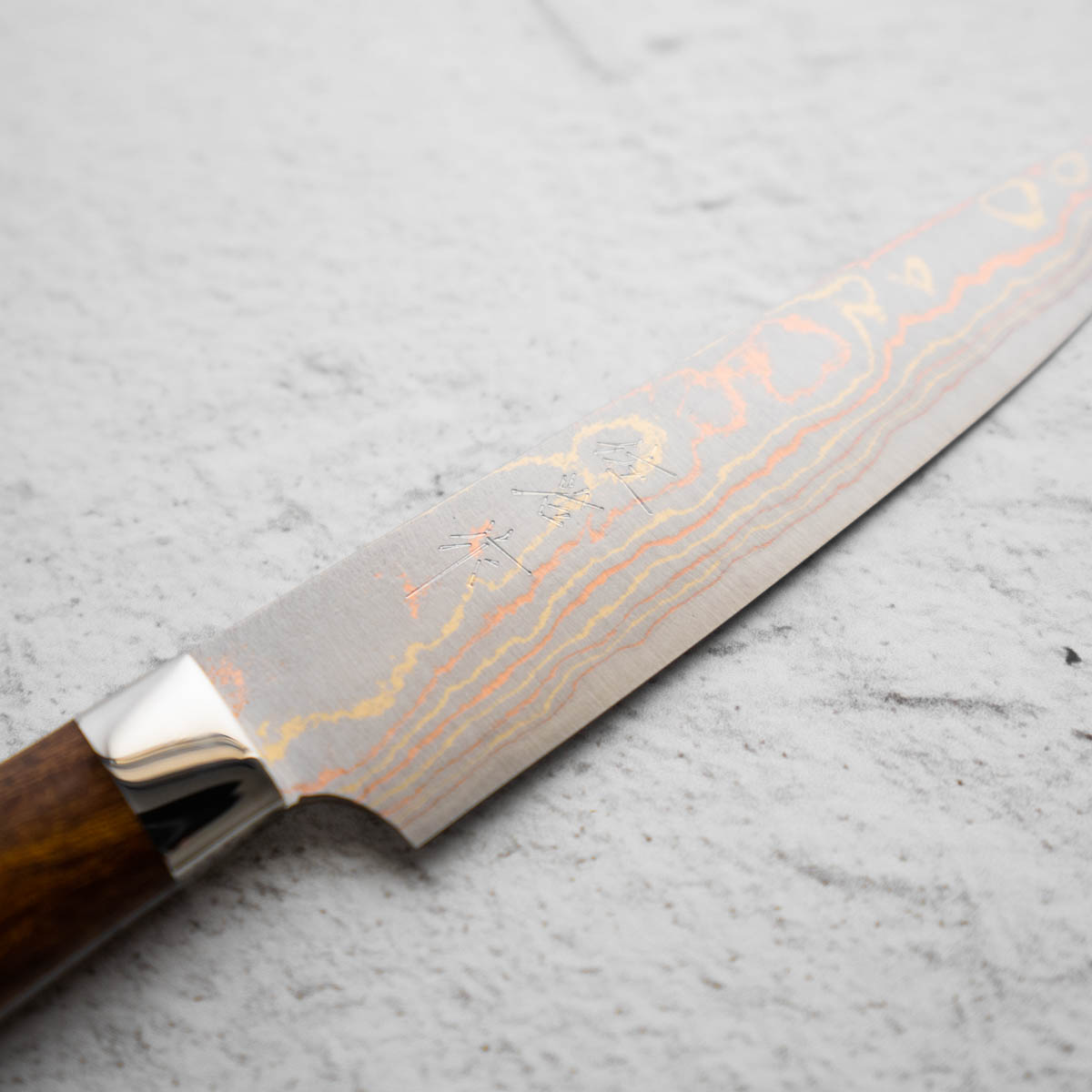 Takeshi Saji Blue 2 Rainbow Damascus Petty 135mm