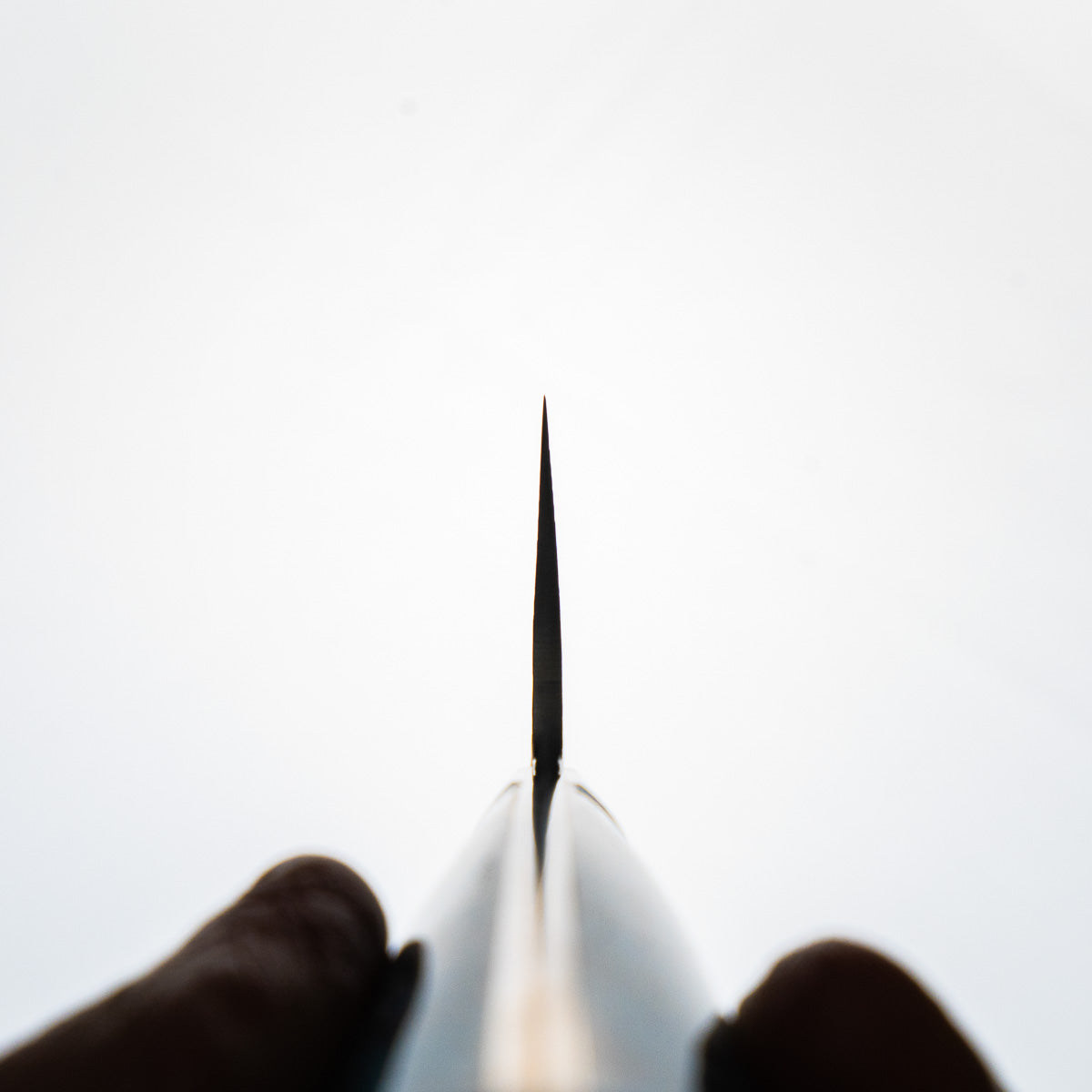 Japanese SG2, also known as R2 steel, is a high-end, powdered metallurgy stainless steel and one of the finest knife-making steels available in Japan. It is a favourite of many for its exceptional hardness and edge retention. Its fine, uniform grain structure enables razor-sharp edges, all the while holding an edge for much longer than Carbon steel knives, without needing to be concerned about rust appearing.
