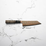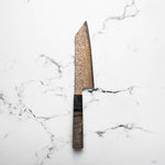The Bunka knife, a versatile and traditional Japanese kitchen tool, features a distinctive, angular tip and a wide blade. It's designed for precision tasks like slicing, dicing, and chopping. Ideal for handling vegetables, meat, and fish, the Bunka is a multifunctional knife celebrated for its utility and unique aesthetic.