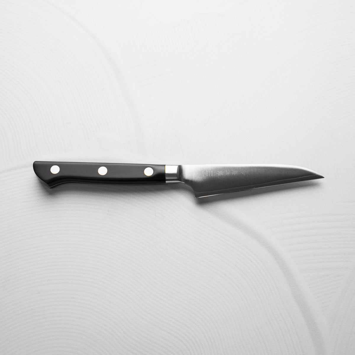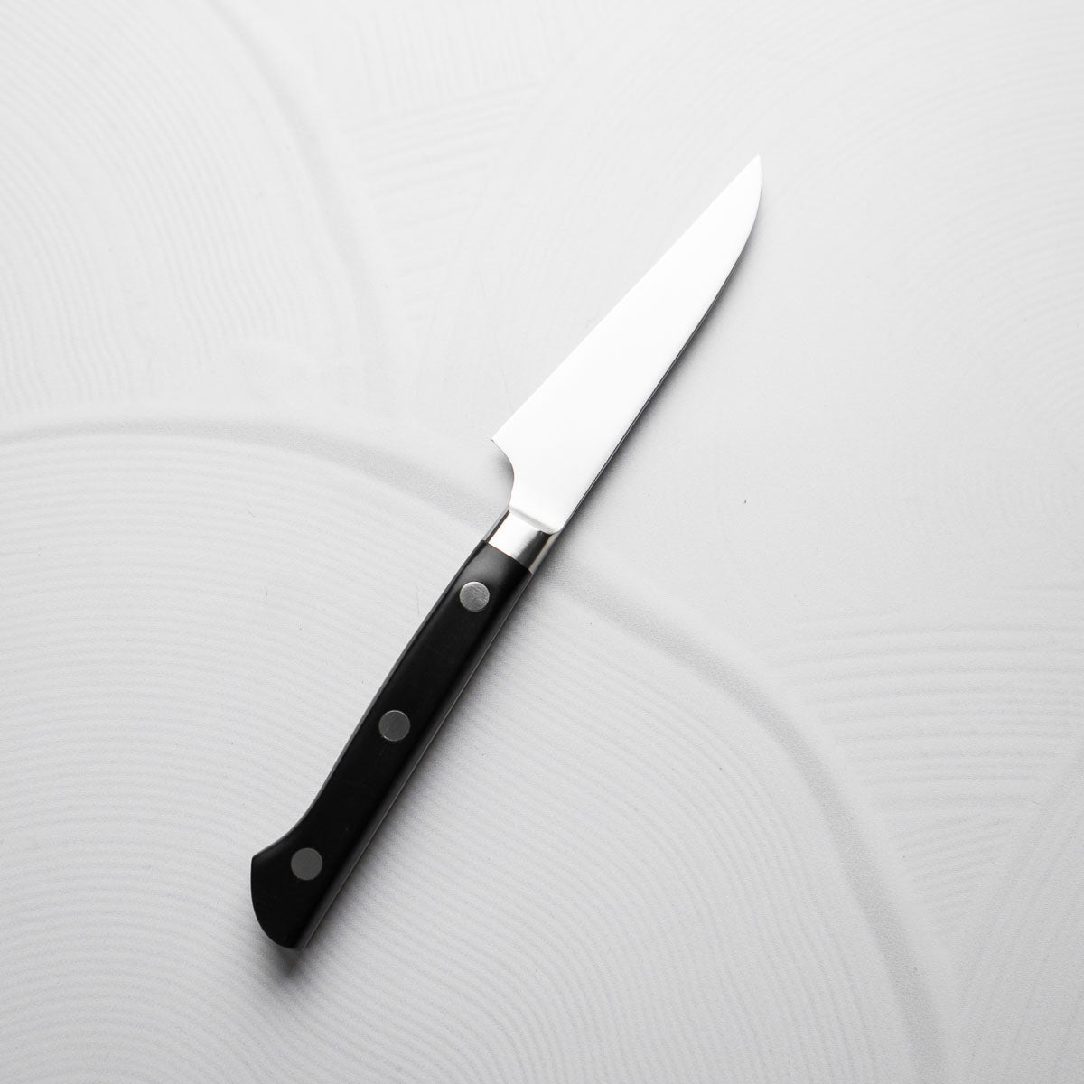 A paring knife, sometimes also known as a petty knife, is a small yet versatile tool, ideal for precise culinary tasks. Traditionally used for peeling, shaping, and delicate cutting, its compact size and sharp edge allow for meticulous control, making it essential for detailed work in fruits, vegetables, and garnishes.