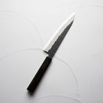 The Petty knife, a quintessential tool in Japanese cuisine, is a smaller utility knife used for precise, delicate tasks. Often considered a smaller sibling to the chef's knife, it excels in hand-held tasks like peeling, trimming, and intricate cutting. Its versatility makes it an essential for detailed culinary work.