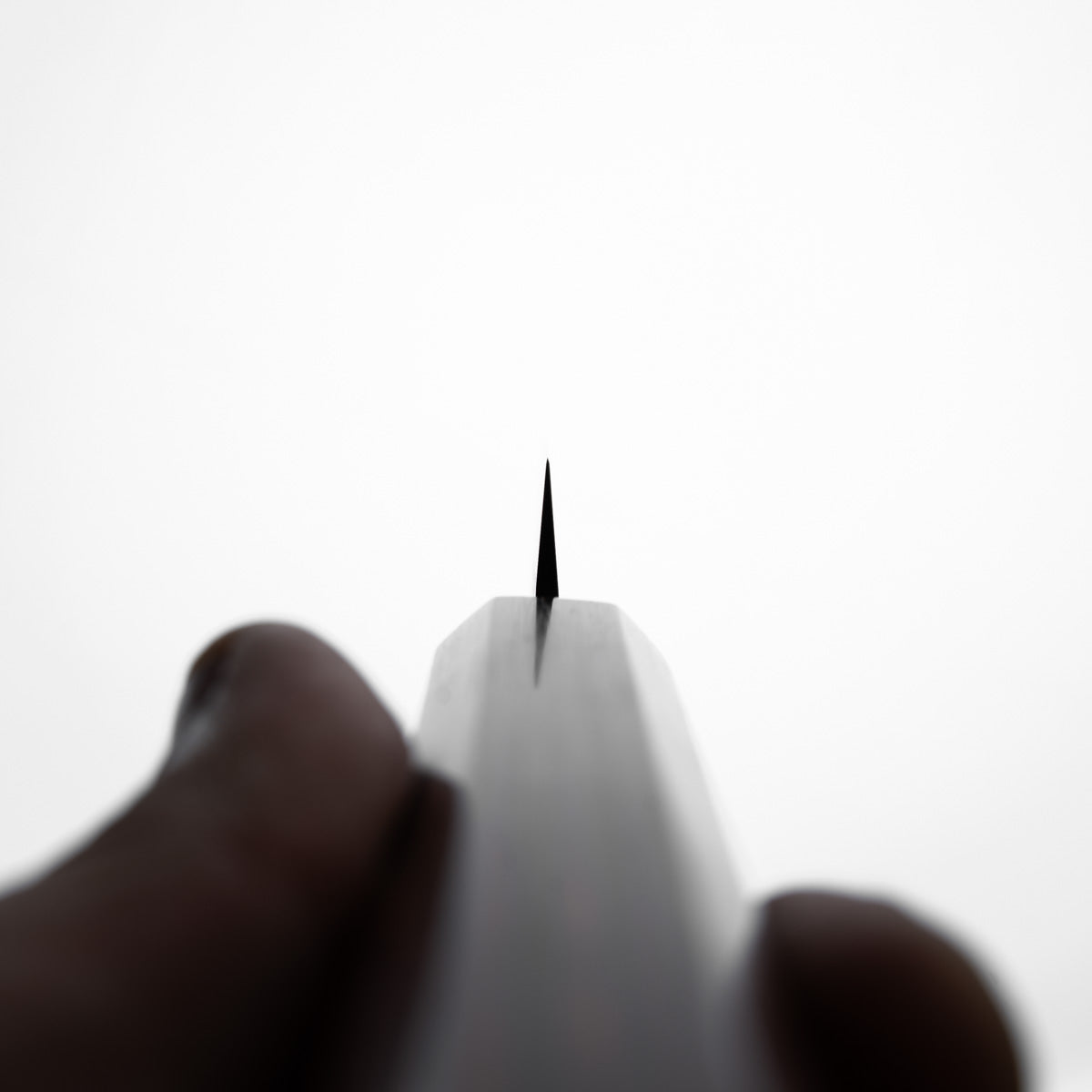 Japanese Ginsan steel, also known as Silver-3 or G3, is an underrated high-grade semi-stainless steel loved by many for being in the ‘goldilocks zone’ of knife steels. It holds a very respectable edge, but is effortless to sharpen. It is considered the semi-stainless version of White 2. It is the knife steel of choice for many home cooks and professional chefs alike.