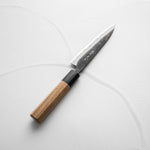 The Petty knife, a quintessential tool in Japanese cuisine, is a smaller utility knife used for precise, delicate tasks. Often considered a smaller sibling to the chef's knife, it excels in hand-held tasks like peeling, trimming, and intricate cutting. Its versatility makes it an essential for detailed culinary work.