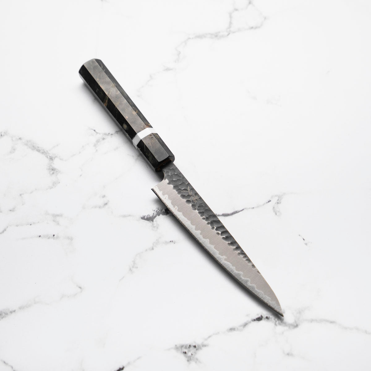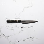 The Petty knife, a quintessential tool in Japanese cuisine, is a smaller utility knife used for precise, delicate tasks. Often considered a smaller sibling to the chef's knife, it excels in hand-held tasks like peeling, trimming, and intricate cutting. Its versatility makes it an essential for detailed culinary work.