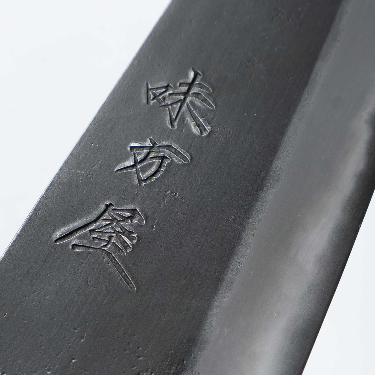 Japanese White Steel #2, a traditional high-carbon steel, is cherished for its purity and fine grain structure, enabling razor-sharp edges, at the cost of being reactive. It is one of the easiest steels to sharpen, but cannot be left wet for even short periods otherwise rust spots can occur. If you’re fastidious in your knife maintenance, this knife steel can be extremely rewarding to use.
