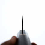 One of their most celebrated offerings is the SKD steel series — featuring a semi-stainless high-carbon core clad in stainless steel. The blades showcase a distinctive wide-bevel grind with a shallow hammer texture that sits stylistically between nashiji and kurouchi finishes. Paired with traditional burnt chestnut handles, each knife reflects Yoshikane’s dedication to consistency, craftsmanship, and timeless design.