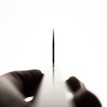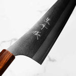 His knives are instantly recognizable for their striking Tsuchime and Suminagashi finishes, thin grinds, and use of high-performance steels such as SG2, HAP40, and stainless-clad Blue Super. Kurosaki’s Fujin series, with its dramatic wind-patterned hammer finish, helped cement his reputation as a blacksmith who blends artistry and technical brilliance in equal measure.