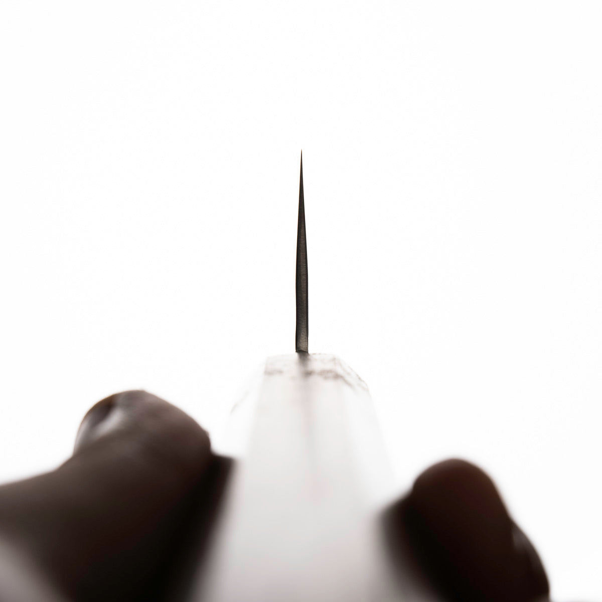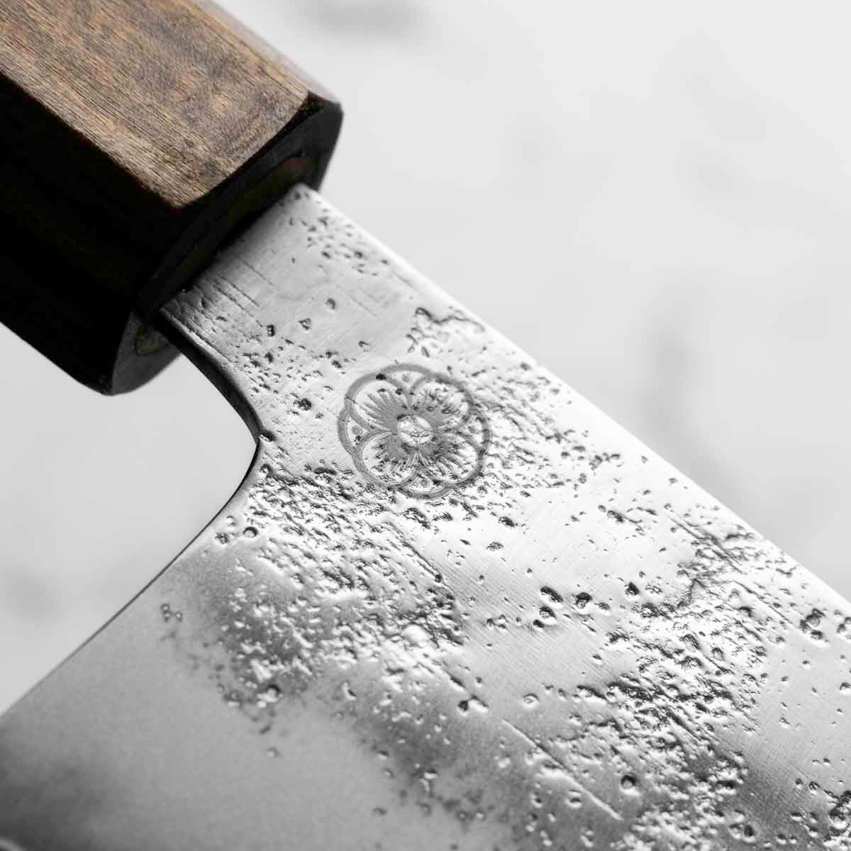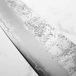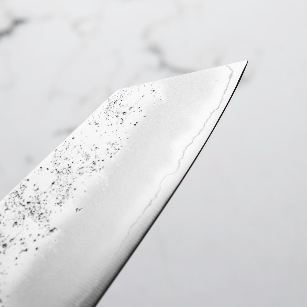Japanese Ginsan steel, also known as Silver-3 or G3, is an underrated high-grade semi-stainless steel loved by many for being in the ‘goldilocks zone’ of knife steels. It holds a very respectable edge, but is effortless to sharpen. It is considered the semi-stainless version of White 2. It is the knife steel of choice for many home cooks and professional chefs alike.