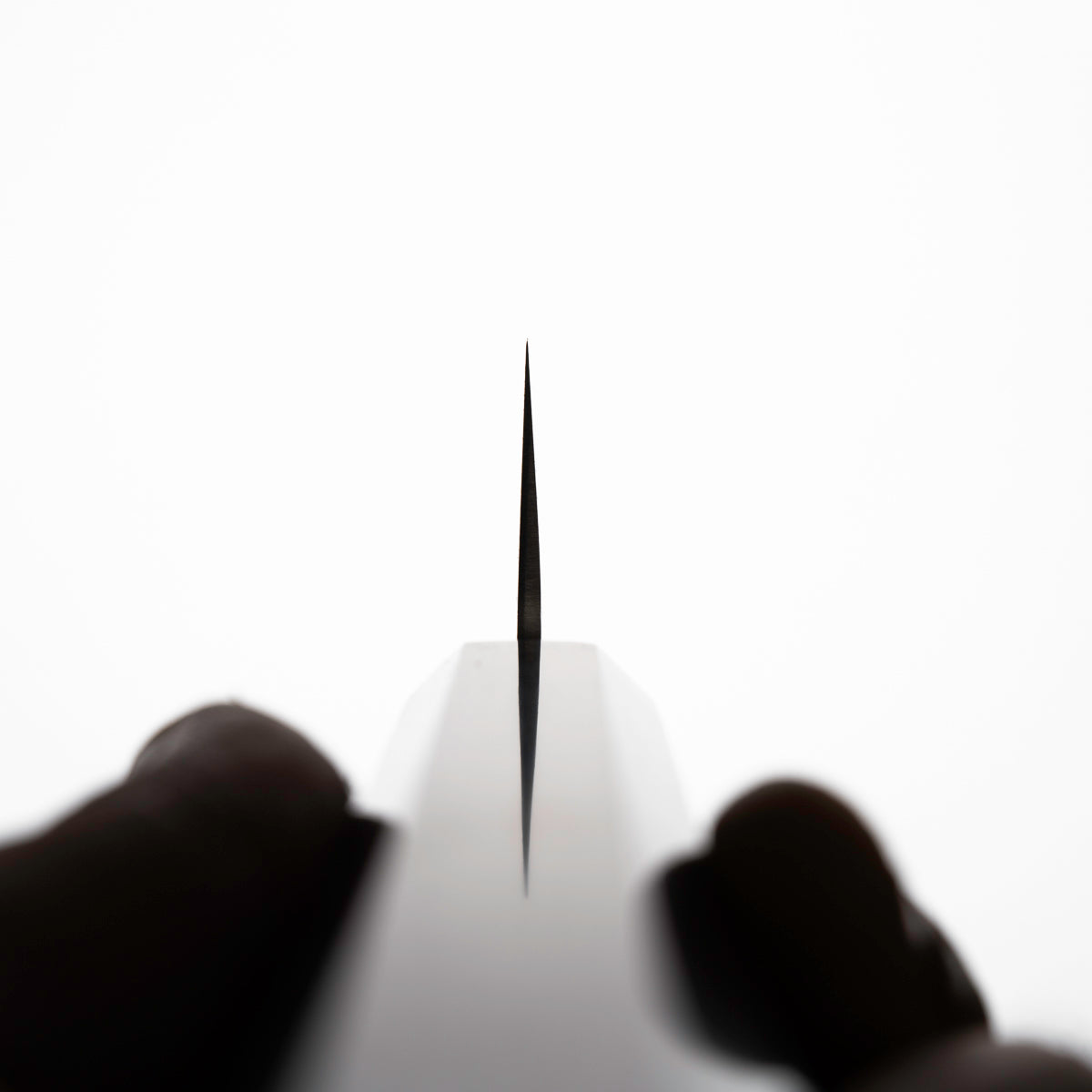 Japanese Ginsan steel, also known as Silver-3 or G3, is an underrated high-grade semi-stainless steel loved by many for being in the ‘goldilocks zone’ of knife steels. It holds a very respectable edge, but is effortless to sharpen. It is considered the semi-stainless version of White 2. It is the knife steel of choice for many home cooks and professional chefs alike.