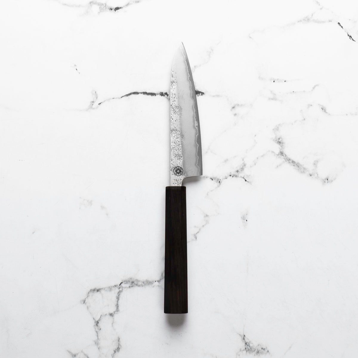 The Petty knife, a quintessential tool in Japanese cuisine, is a smaller utility knife used for precise, delicate tasks. Often considered a smaller sibling to the chef's knife, it excels in hand-held tasks like peeling, trimming, and intricate cutting. Its versatility makes it an essential for detailed culinary work.