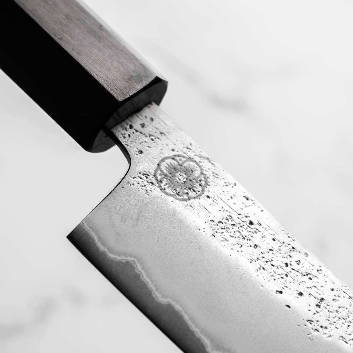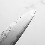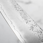 Japanese Ginsan steel, also known as Silver-3 or G3, is an underrated high-grade semi-stainless steel loved by many for being in the ‘goldilocks zone’ of knife steels. It holds a very respectable edge, but is effortless to sharpen. It is considered the semi-stainless version of White 2. It is the knife steel of choice for many home cooks and professional chefs alike.