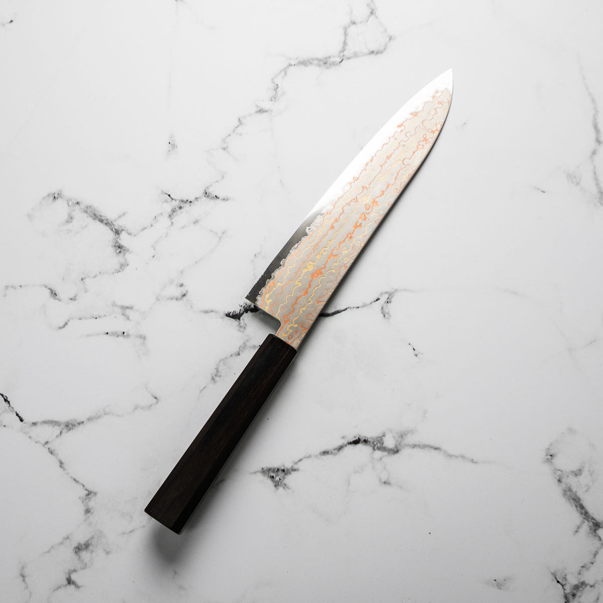 Hatsukokoro Hayabusa Blue 2 Rainbow Damascus Gyuto 210mm