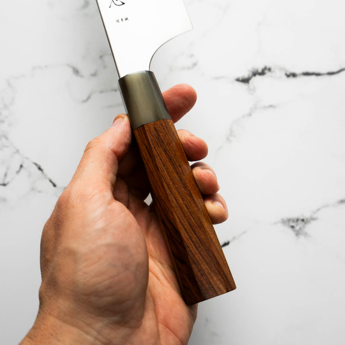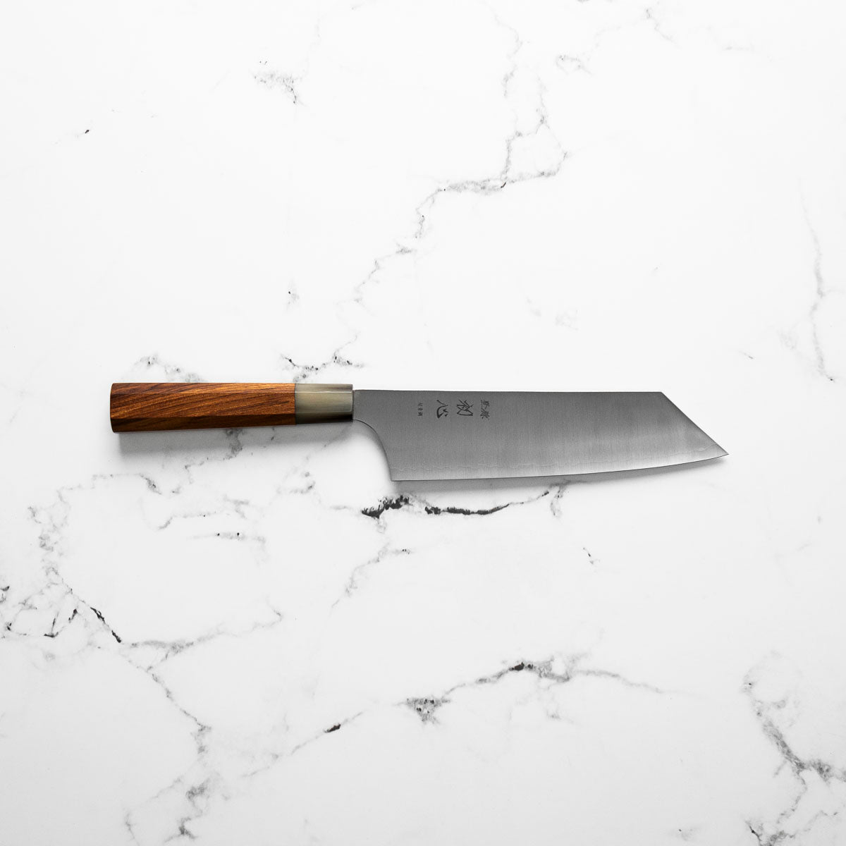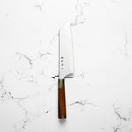 The Bunka knife, a versatile and traditional Japanese kitchen tool, features a distinctive, angular tip and a wide blade. It's designed for precision tasks like slicing, dicing, and chopping. Ideal for handling vegetables, meat, and fish, the Bunka is a multifunctional knife celebrated for its utility and unique aesthetic.