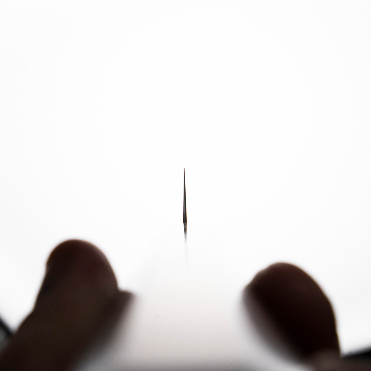 This knife is made from a high-carbon steel and as such, will require a little more care than a regular off-the-shelf knife. It must be dried shortly after use, as prolonged exposure to moisture can cause rust spots to appear. A very light coat of oil during storage also helps to prevent rust spots. A patina (coloration and seasoning of the steel) will occur with use.