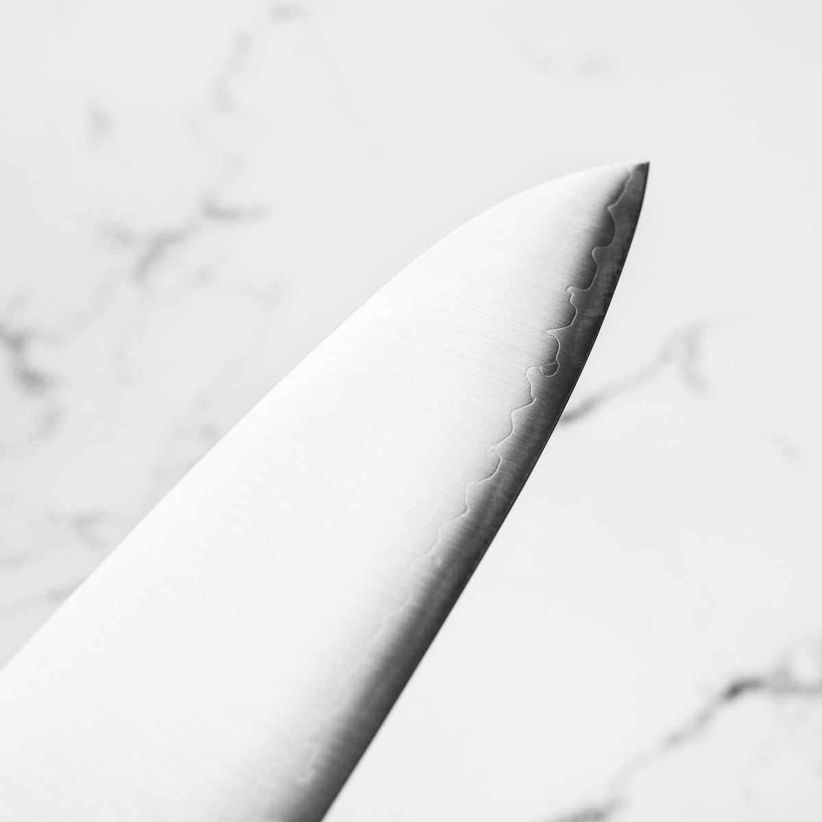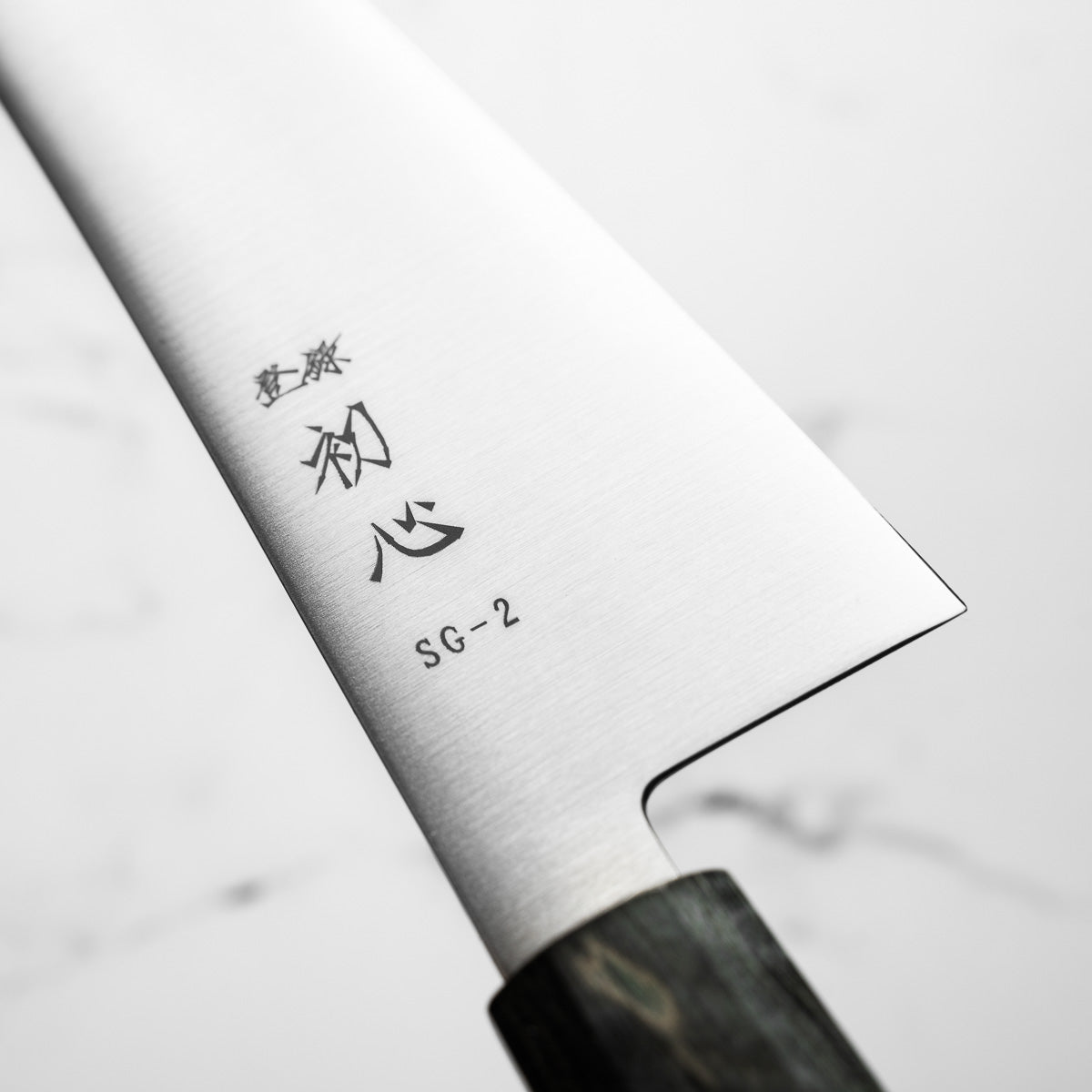 Japanese SG2, also known as R2 steel, is a high-end, powder metallurgy stainless steel and one of the finest knife-making steels available in Japan. It is a favorite of many for its exceptional hardness and edge retention. Its fine, uniform grain structure enables razor-sharp edges, all the while holding an edge for much longer than Carbon steel knives, without needing to be concerned about rust appearing.