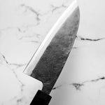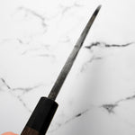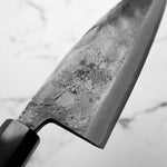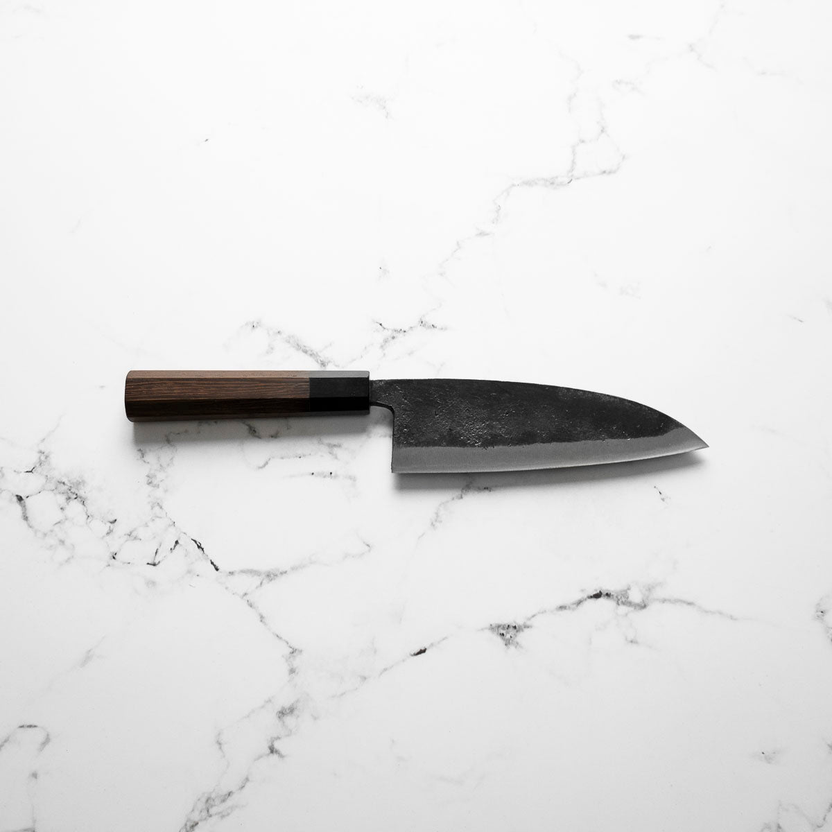 The Deba is a thick, solid knife for butchery of all kinds. It has a thick spine, a thick edge, and can withstand rougher treatment than thinner Japanese knives.