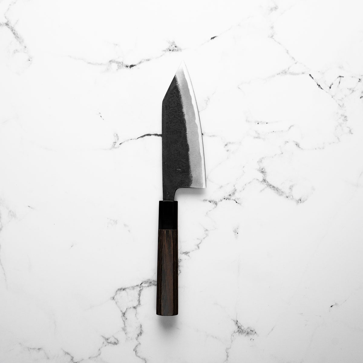 Hatsukokoro Kurokaze Blue 2 Kurouchi Double Bevel Kiritsuke Deba 150mm