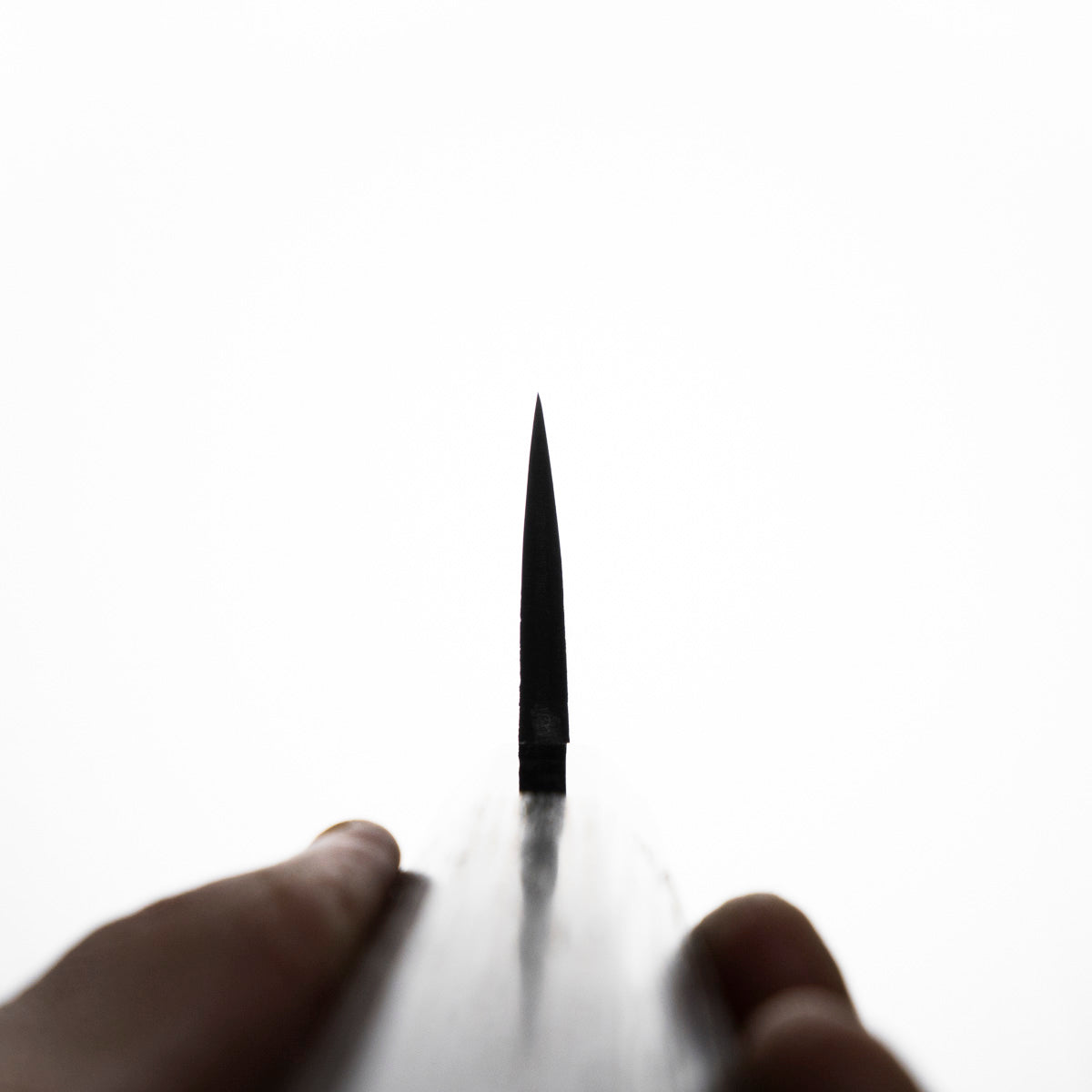 This Double Bevel Deba is a thick, solid knife for butchery of all kinds. It has a thick spine, a thick edge, and can withstand rougher treatment than thinner Japanese knives.