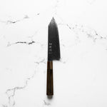 The Bunka knife, a versatile and traditional Japanese kitchen tool, features a distinctive, angular tip and a wide blade. It's designed for precision tasks like slicing, dicing, and chopping. Ideal for handling vegetables, meat, and fish, the Bunka is a multifunctional knife celebrated for its utility and unique aesthetic.
