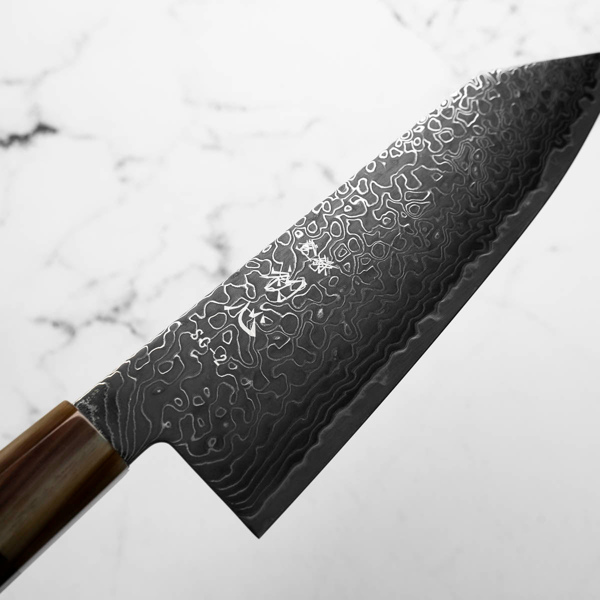 Japanese SG2, also known as R2 steel, is a high-end, powdered metallurgy stainless steel and one of the finest knife-making steels available in Japan. It is a favourite of many for its exceptional hardness and edge retention. Its fine, uniform grain structure enables razor-sharp edges, all the while holding an edge for much longer than Carbon steel knives, without needing to be concerned about rust appearing.