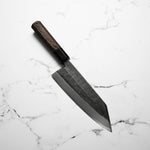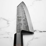 The Deba knife, deeply rooted in Japanese culinary tradition, is a robust, single-bevel knife (sometimes double) primarily designed for fileting fish. Its thick, heavy blade effortlessly glides through fish bones and joints, while preserving delicate flesh. Ideal for seafood preparation, the Deba is a staple in Japanese kitchens for its precision and strength.