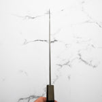The Kiritsuke knife, a symbol of expertise in Japanese cuisine, is traditionally used by executive chefs. This multi-purpose knife combines features of a slicer and a vegetable knife, with its angled tip and long blade. It excels in precise slicing, chopping, and julienning, making it a prestigious and versatile tool.