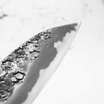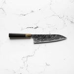 Embracing a rapid rise in popularity for his unique designs and committment to striving for perfection, Shunsuke Manaka is the man behind Kisuke knives. From the sketchbook to the kitchen, he is the sole craftsman behind the entire knifemaking process. Shunsuke engineers these knives using a process known as Warikomi, whereby a glowing hot piece of steel is split, and the core steel is wedged in and forged together. The split steel becomes the outer layers, and the core steel is exposed at the edge. This process produces a stronger, tougher more durable blade.