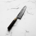 The Petty knife, a quintessential tool in Japanese cuisine, is a smaller utility knife used for precise, delicate tasks. Often considered a smaller sibling to the chef's knife, it excels in hand-held tasks like peeling, trimming, and intricate cutting. Its versatility makes it an essential for detailed culinary work.