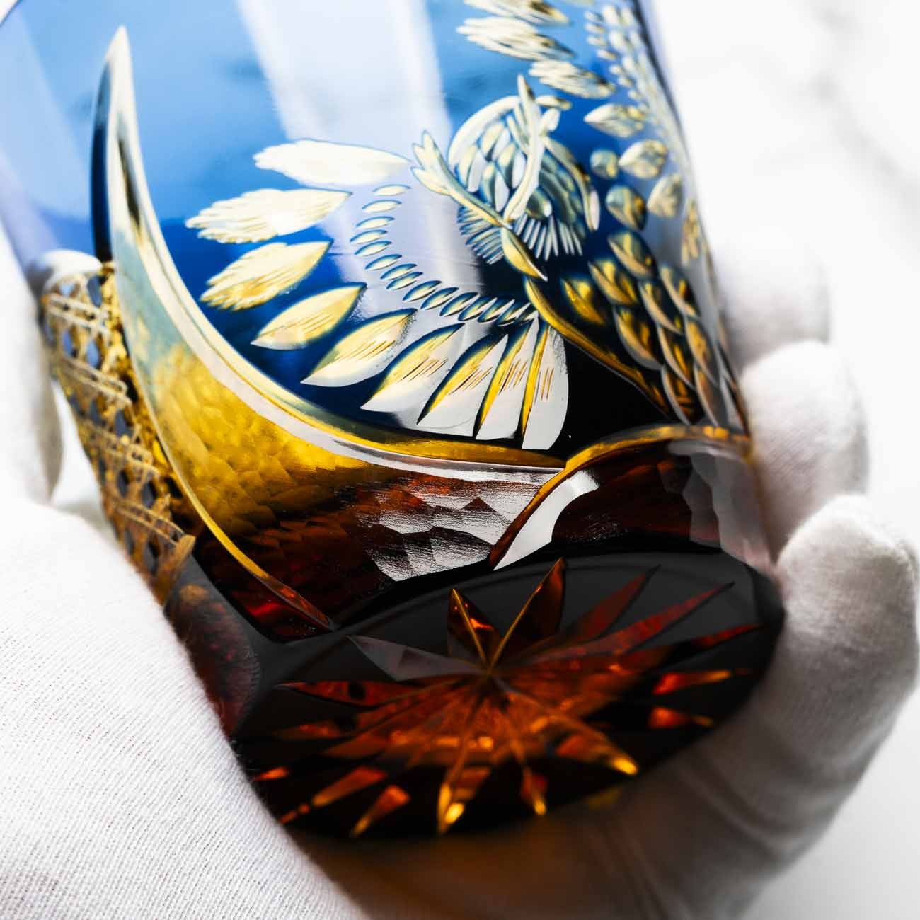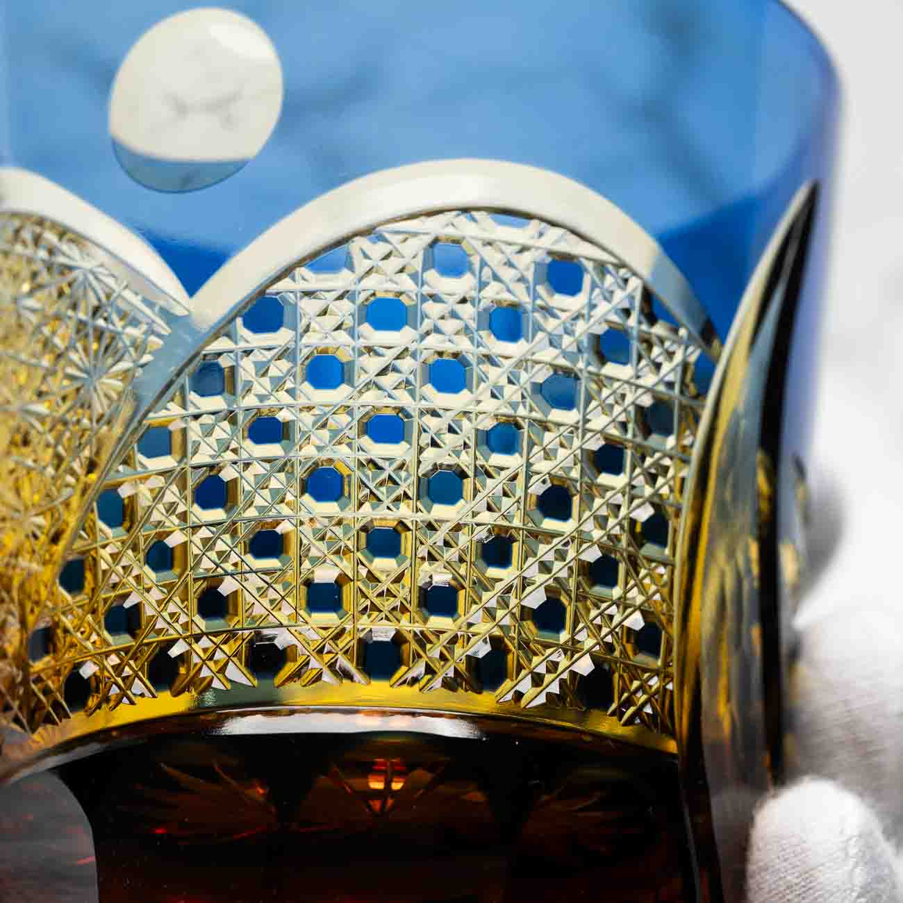 The first skill he learned was hand polishing. This involves using both the hands and the eyes to carefully polish the cut surfaces, and it is a task that takes time. This young man, who was charmed by Edo Kiriko in his youth, learned each of the techniques involved one by one, and after studying for around a dozen years, he finally became independent and set up his own workshop and store.