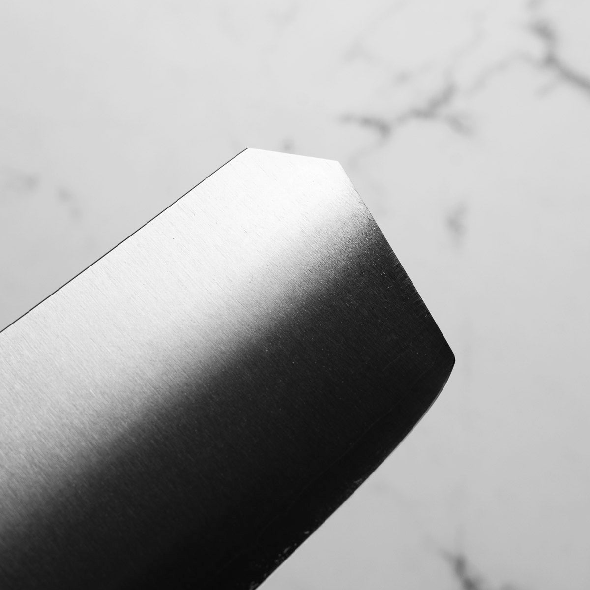 Chromax is a high-end, powdered metallurgy semi stainless steel and one of the finest knife-making steels available in Japan. Its fine, uniform grain structure enables razor-sharp edges, all the while holding an edge for much longer than Carbon steel knives, without needing to be concerned about rust appearing.