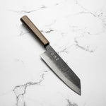 The Bunka knife, a versatile and traditional Japanese kitchen tool, features a distinctive, angular tip and a wide blade. It's designed for precision tasks like slicing, dicing, and chopping. Ideal for handling vegetables, meat, and fish, the Bunka is a multifunctional knife celebrated for its utility and unique aesthetic.