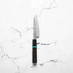 The Petty knife, a quintessential tool in Japanese cuisine, is a smaller utility knife used for precise, delicate tasks. Often considered a smaller sibling to the chef's knife, it excels in hand-held tasks like peeling, trimming, and intricate cutting. Its versatility makes it an essential for detailed culinary work.