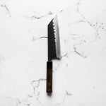 The Bunka knife, a versatile and traditional Japanese kitchen tool, features a distinctive, angular tip and a wide blade. It's designed for precision tasks like slicing, dicing, and chopping. Ideal for handling vegetables, meat, and fish, the Bunka is a multifunctional knife celebrated for its utility and unique aesthetic.